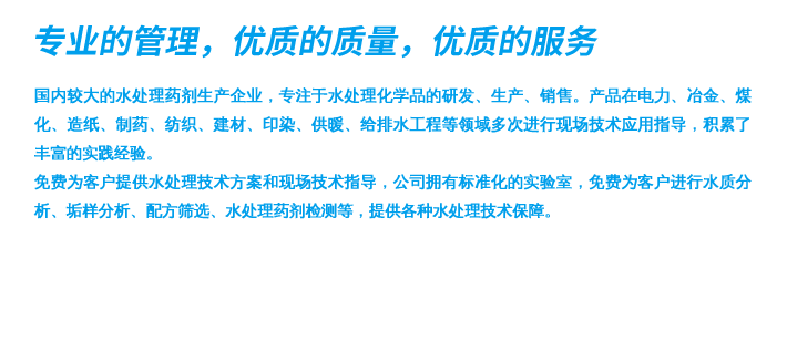 專業(yè)從事各種水處理藥劑、水處理設(shè)備、化工原料、水、地源熱泵、空氣源熱泵、地溫中央空調(diào)工程的開發(fā)、生產(chǎn)